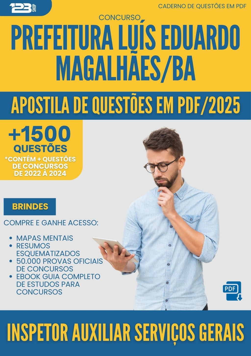 Apostila de Questões para Concurso Inspetor Auxiliar Servicos Gerais da Prefeitura Luis Eduardo Magalhaes Ba 2025 - Mais de 1.500 Questões