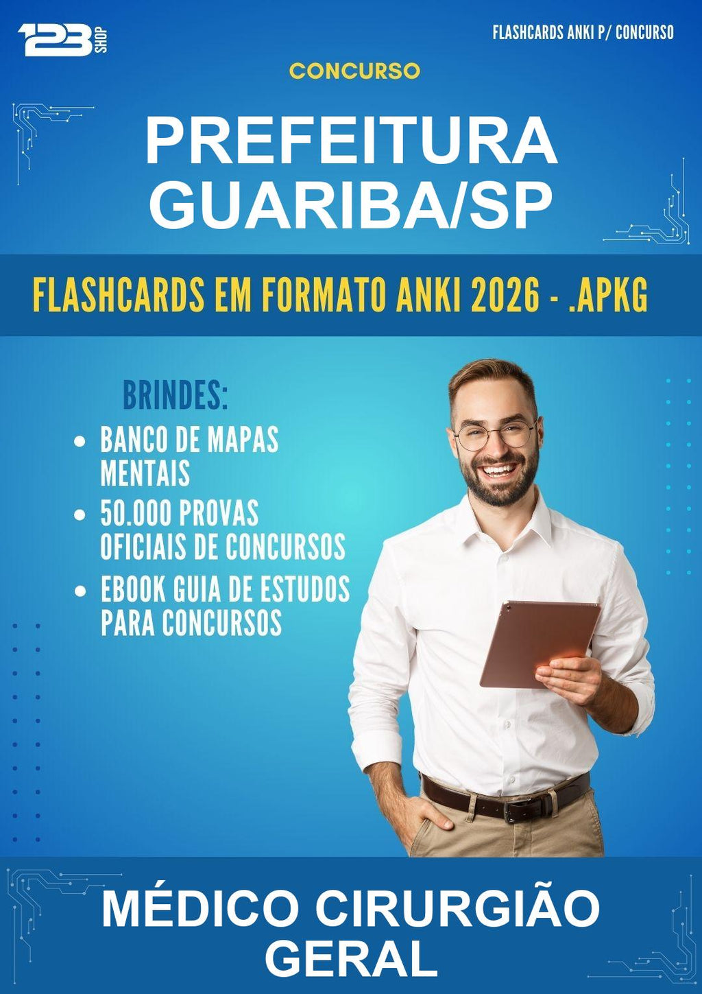 Flashcards Anki para Concurso Prefeitura Guariba/SP para Médico Cirurgião Geral em formato .APKG - 400 Flashcards Anki