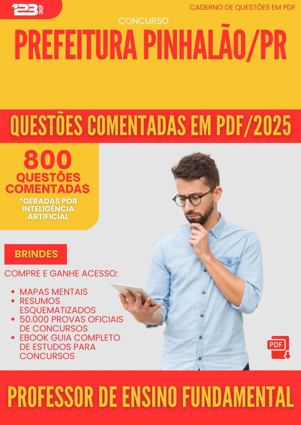 800 Questões Comentadas para Concurso Professor De Ensino Fundamental da Prefeitura Pinhalao Pr 2025 - 800 Questões